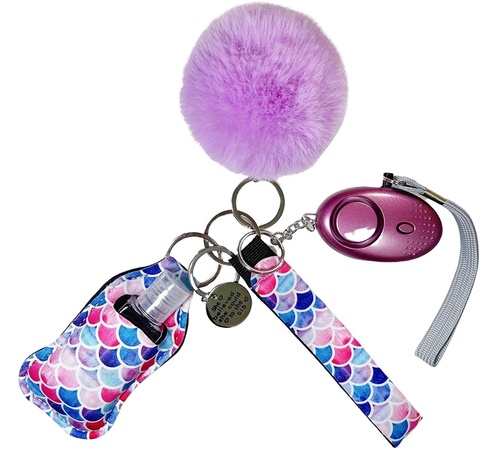 Ins Bán Chạy Báo Động An Toàn Cá Nhân Pom Pom Và Lip Balm Bộ Móc Khóa Tự Vệ Cho Nữ